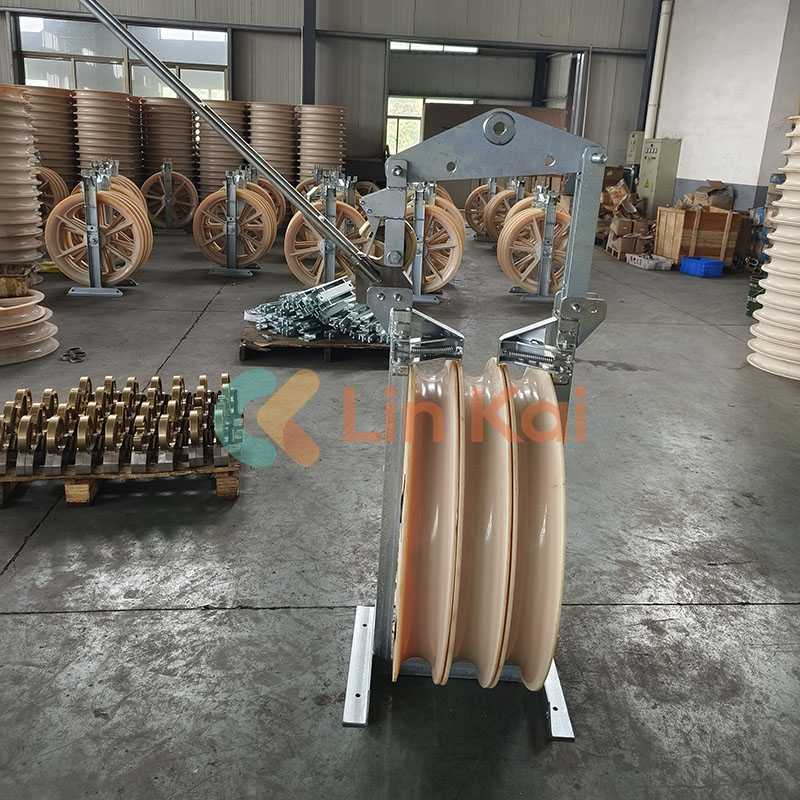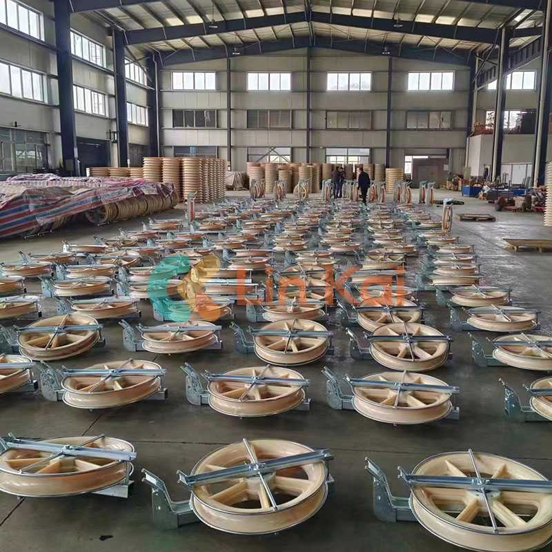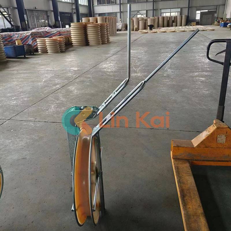Roda Helicopter Conductor Stringing Blocks, diperbuat daripada aloi aluminium dan dipasang pada galas bebola, menampilkan alur yang terdiri daripada sektor negatron kalis haus yang boleh ditukar ganti. Bingkai dibina daripada keluli tergalvani, dan peranti pembumian disediakan atas permintaan.